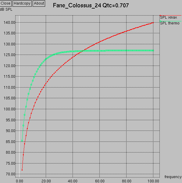 | Hz | SPL thermal | SPL xmax | Power xmax |