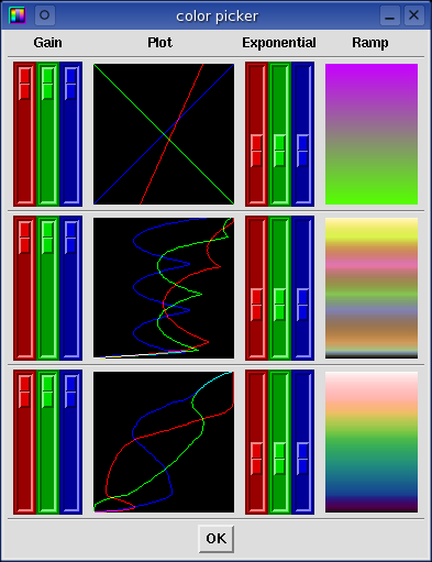 ramps (top to bottom) that can be used in the spectrogram display. By