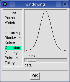 The Hanning, Blackman (default), and Kaiser (beta=14) windows are good for