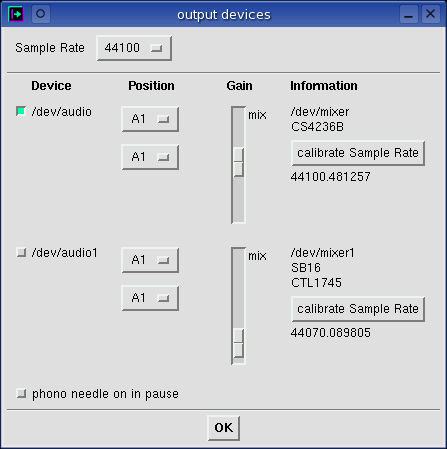 This section displays the /dev/mixer, the audio codec/mixer names, and