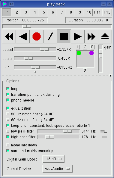 the playback speed down to 1/128th of normal speed. Also hitting this