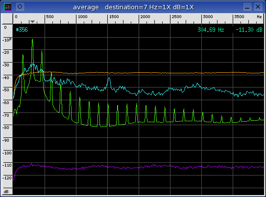 the frequency domain. The noise floor is high, the harmonic distortion is